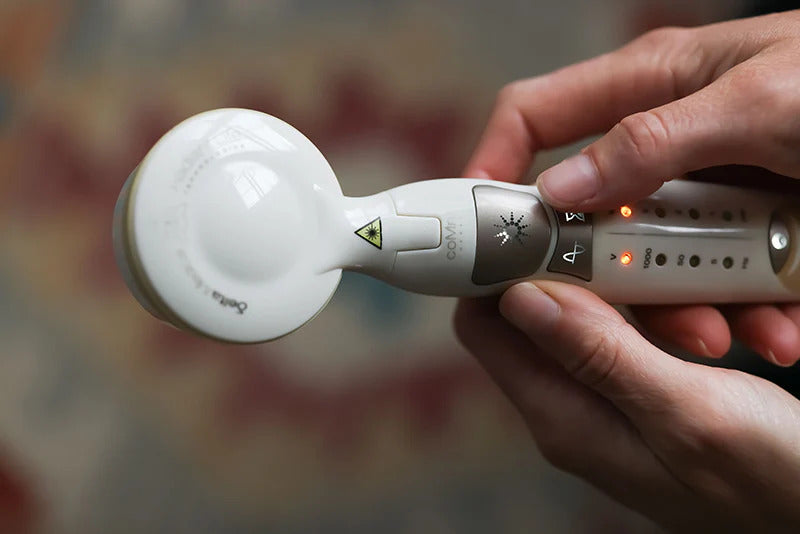 coMra's advanced laser therapy device combining laser, magnetism coloured light and including ultrasound for more efficient treatments. Used by home users and professionals to treat pain and wide variety of conditions as well as for general health and preventative therapy.